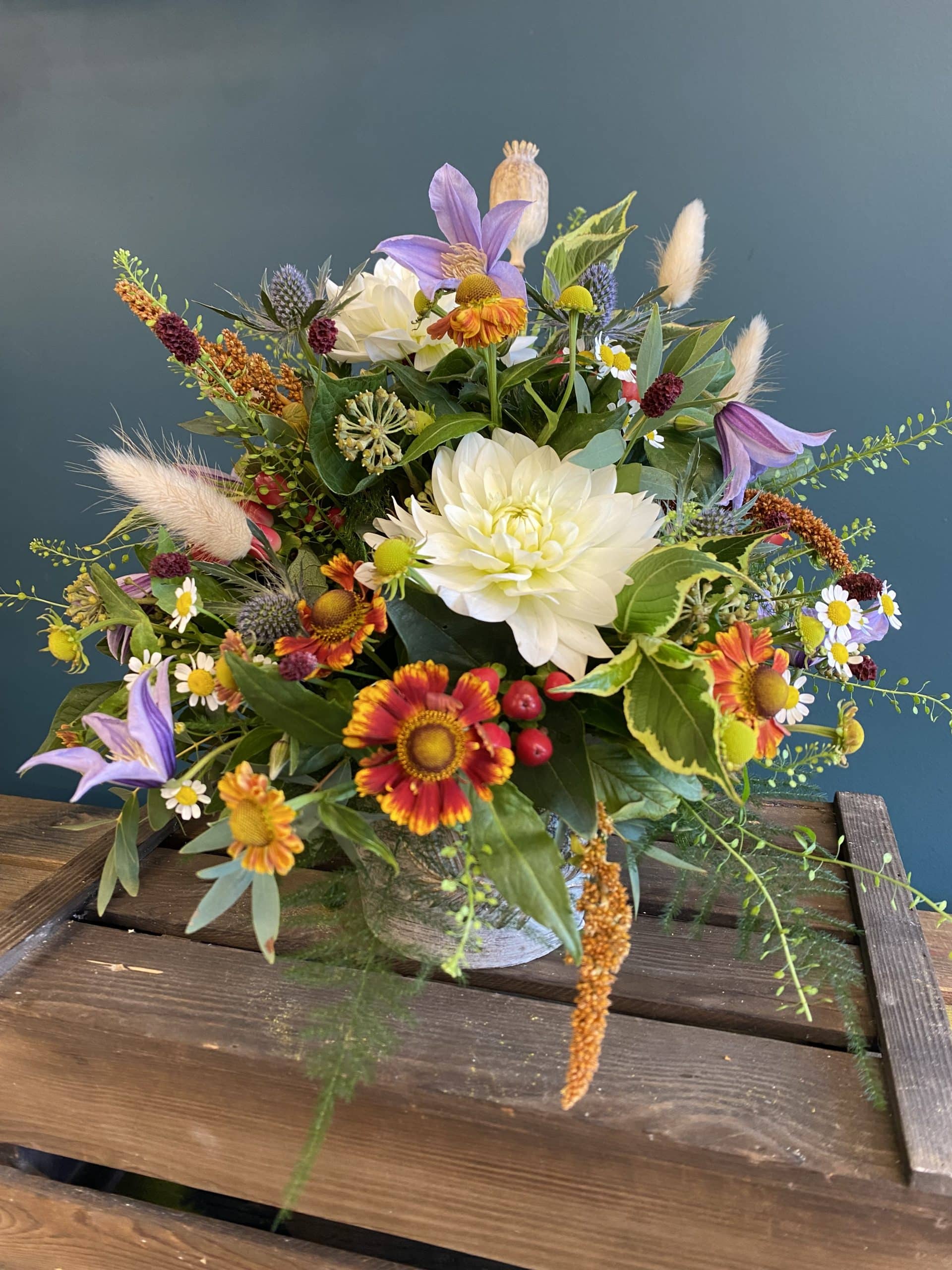 Choose some of the best seasonal flowers with this gorgeous arrangement which arrives in a new unique seasonal pot that can be used over and over again.