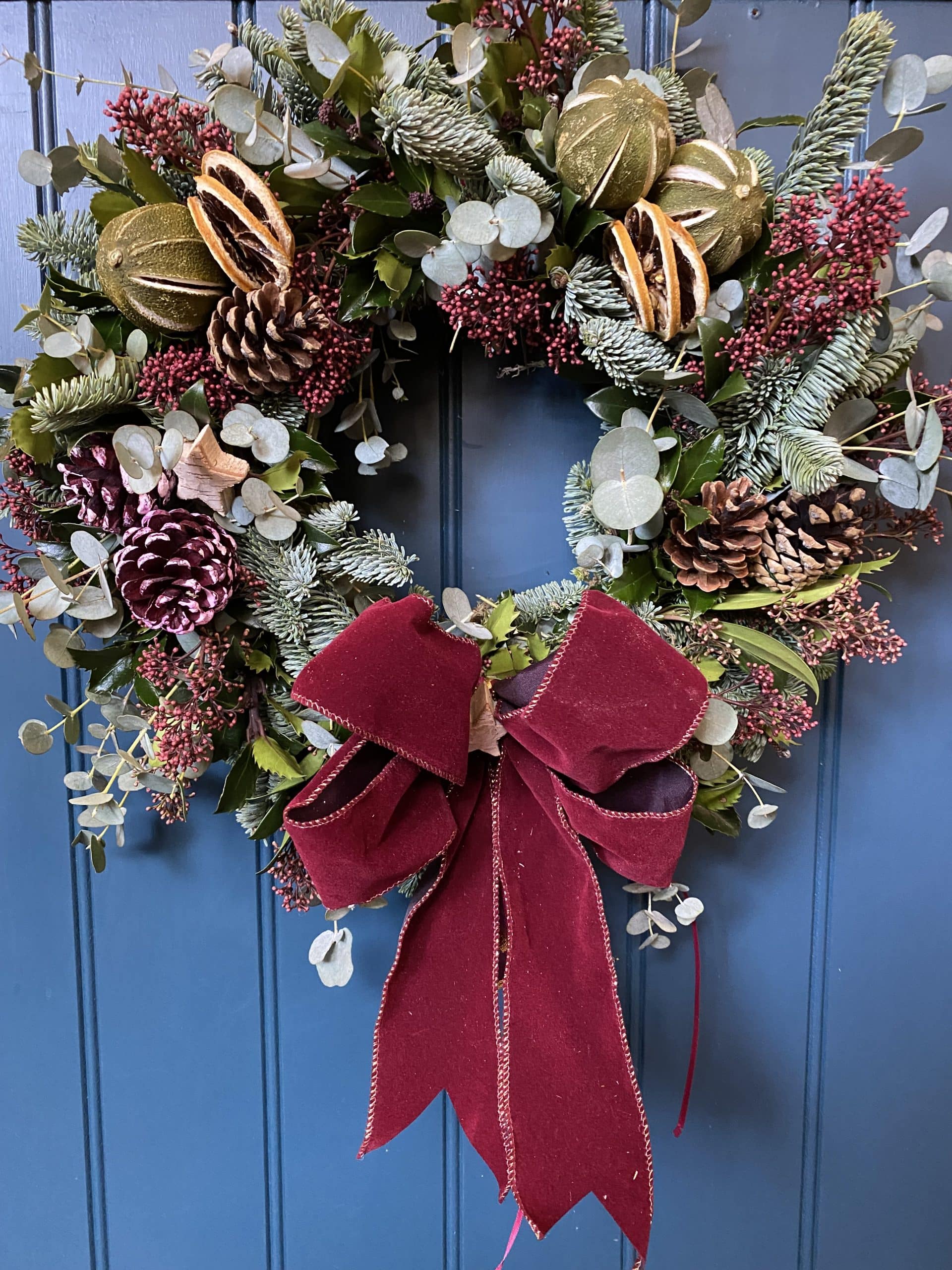 All sizes will fit a standard door and all Wreaths will come with a colour choice of ribbon, Red, Green, Hessian, or even Pink!
